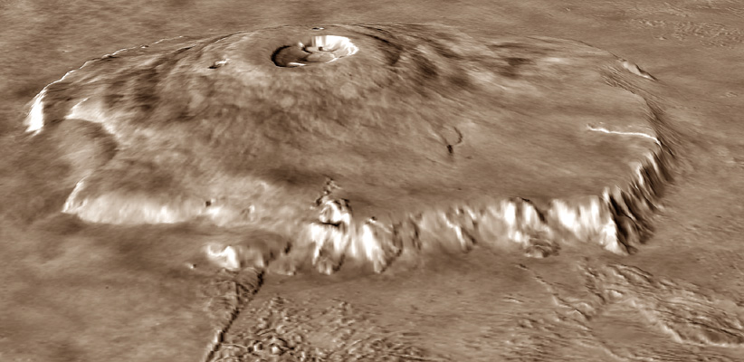 Marte, pur avendo solo una volta e mezza le dimensioni della Terra, ha alcuni vulcani che superano in dimensioni ed altezza i maggiori vulcani terrestri. I più massicci vulcani di Marte sono collocati in due regioni:
