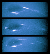 La stratificazione delle nubi può essere messa meglio in evidenza da una serie di immagini prese a lunghezze di onda diverse. Alle lunghezze di onda caratteristiche del metano si possono scorgere dettagli di nubi ed un bordo più splendente del resto del disco dovuto ad uno strato di nebbia di metano situato a grande altezza.