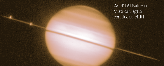 di taglio degli anelli di Saturno con due dei suoi satelliti
