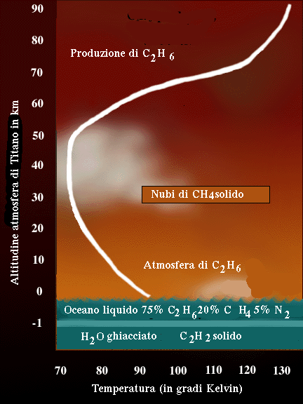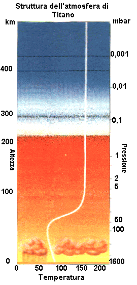Titano non ha campi magnetici, orbita fuori della magnetosfera di Saturno ed è quindi direttamente esposto alla radiazione solare. La sua temperatura superficiale è circa di 94° (gradi Kelvin) per poi risalire a 200° (gradi Kelvin) circa nella stratosfera. È possibile che sulla sua superficie si trovino oceani e fiumi di metano liquido sovrastati da colline di metano solido. Recenti osservazioni con il telescopio spaziale (HST) mostrano alcune caratteristiche della sua atmosfera nel vicino infrarosso in cui l'atmosfera diventa più trasparente che nel visibile. Queste immagini suggeriscono la presenza di un grande continente nell'emisfero di Titano la cui faccia segue l'orbita attorno a Saturno. La rotazione di Titano è sincrona con quella della maggior parte delle lune di Saturno.