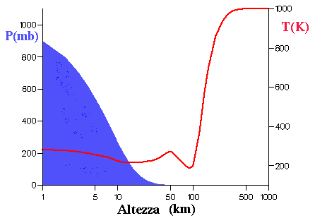 Andamento di temperatura e pressione nell'atmosfera della Terra
