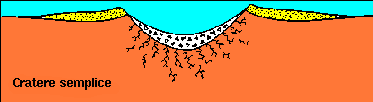 I crateri da impatto si distinguono, in base al loro aspetto, in due gruppi: i crateri semplici sono relativamente piccoli e con il fondo arrotondato; la loro profondità è 5-7 volte inferiore al diametro. |