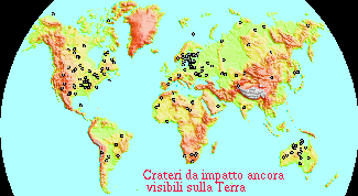 Tutti i pianeti interni sono stati pesantemente colpiti nel corso della loro storia e il risultato è ben visibile sulla Luna, su Marte e su Mercurio, dove i processi geologici si sono fermati molto tempo fa. Sulla Terra, che è stata colpita più duramente della Luna, l'evoluzione geologica ha provocato l'erosione e la sedimentazione (il riempimento) dei crateri da impatto, fino al punto che se ne riescono ad identificare solo 120, la maggior parte dei quali in zone geologicamente stabili. |
