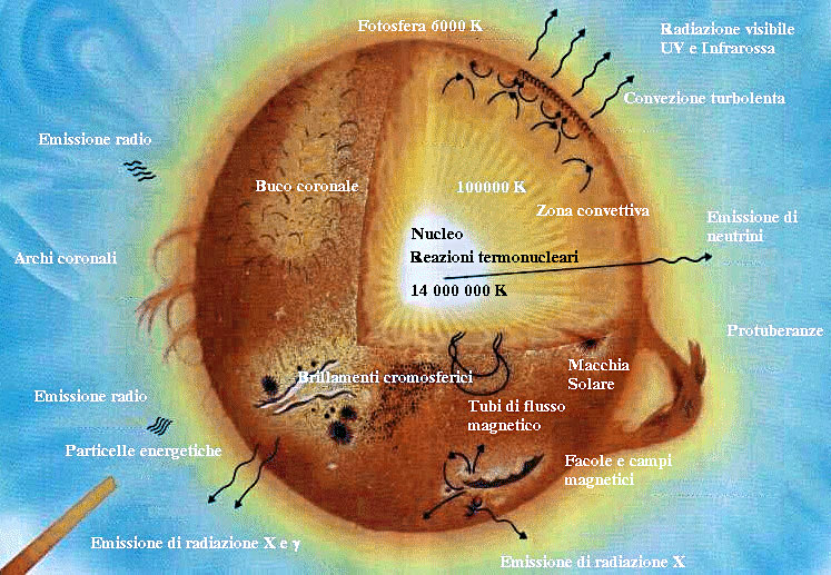 Per quanto riguarda la struttura interna del Sole si distinguono: