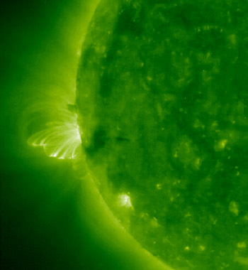 Immagine di una protuberanza solare fotografata dalla sonda SOHO. |