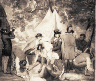 Acquarello di T. Gosse del 1770 in cui è raffigurato l'accampamento di Cook presso Botany Bay nel Nuovo Galles del sud.