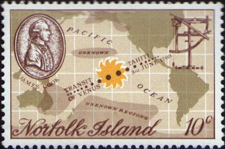 Francobollo commemorativo della viaggio di James Cook in occasione del transito del 1769.