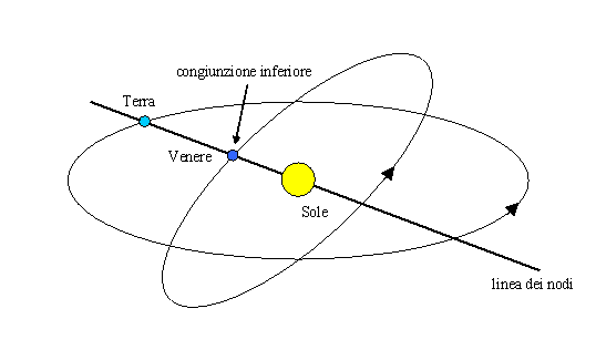 Nel compiere le sue rivoluzioni attorno al Sole, Venere viene a trovarsi periodicamente tra il nostro pianeta ed il Sole (congiunzione inferiore). Se questa congiunzione ha luogo quando la Terra e Venere si trovano sulla linea in cui i piani dell’orbita dei due pianeti si incontrano (linea dei nodi), allora dalla Terra si vede il disco di Venere transitare sul disco più grande del Sole.