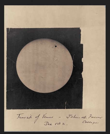 Fotografia di Venere sul disco solare relativa al passaggio del 1882 (crediti: Vassar College, Hudson Valley – New York). |