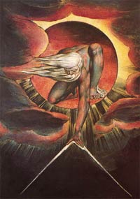 3. William Blake, Dio, 1794. Blake sarebbe stato ispirato, in questa incisione, da una “visione” avuta un giorno, alzando gli occhi verso il cielo in cima ad una scala. Manchester, Whitworth Art Gallery.