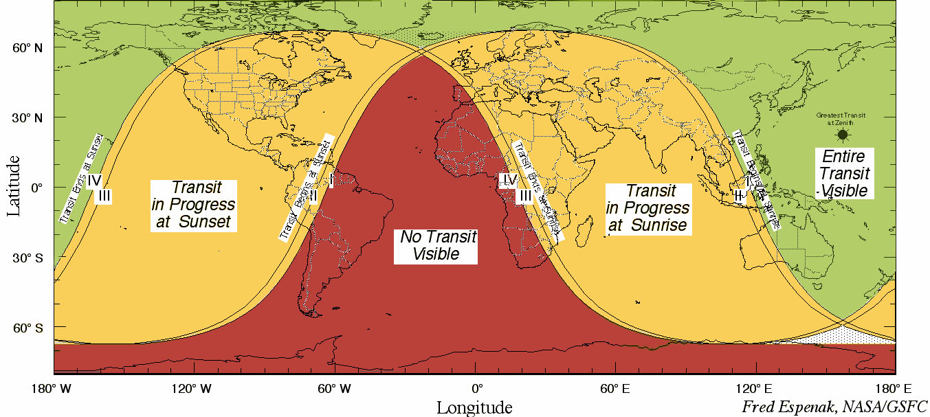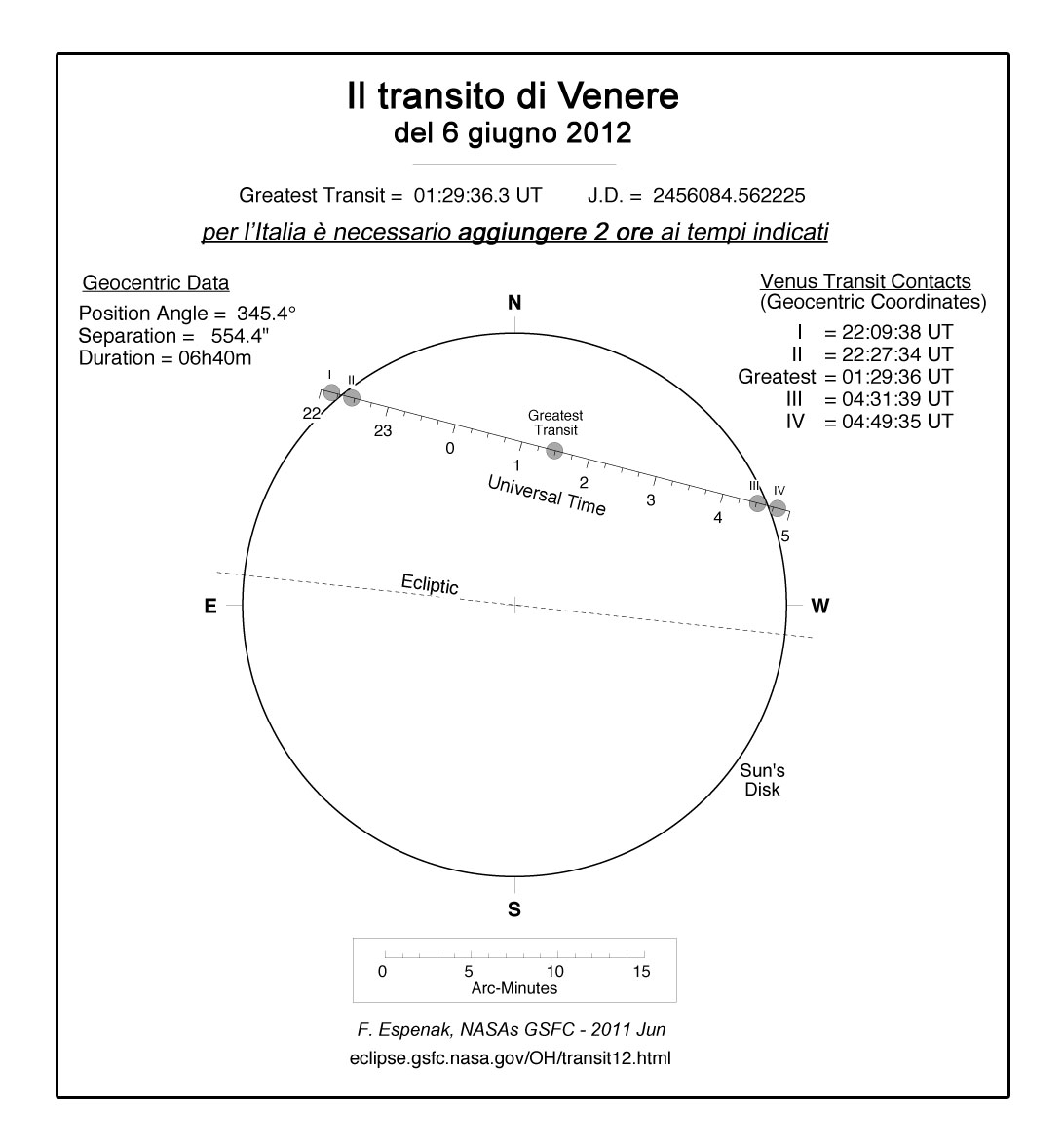 Il transito di Venere sul Sole è un fenomeno piuttosto raro caratterizzato da un ciclo stabile di 243 anni. Fu previsto per la prima volta da Keplero (1571-1630) per l'anno 1631, da allora sino ai nostri giorni si sono verificate quattro coppie di eventi, separati da otto anni, distanziate alternativamente da 121,5 e 105,5 anni. L'ultimo transito di Venere è avvenuto l’8 giugno 2004, il prossimo sarà a cavallo tra il 5 e il 6 giugno 2012, mentre il successivo avrà luogo l'11 dicembre 2117!
