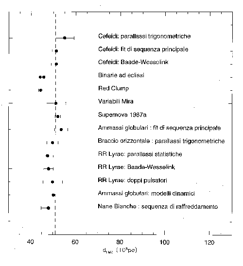 Figura 3. La distanza della Grande Nube di Magellano stimata attraverso