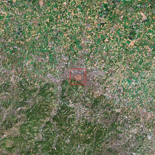 100.000 metri. Il nostro punto di partenza non è pił distinguibile, ma sono ancora ben evidenti i tetti rossi del capoluogo emiliano.