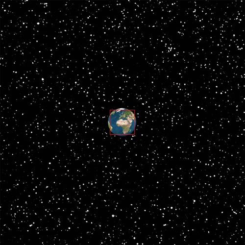 100.000.000 metri. La Terra appare isolata e sospesa ad questa distanza. Nel suo moto attorno al Sole, essa attraversa un quadrato come quello dell'immagine in un'ora.