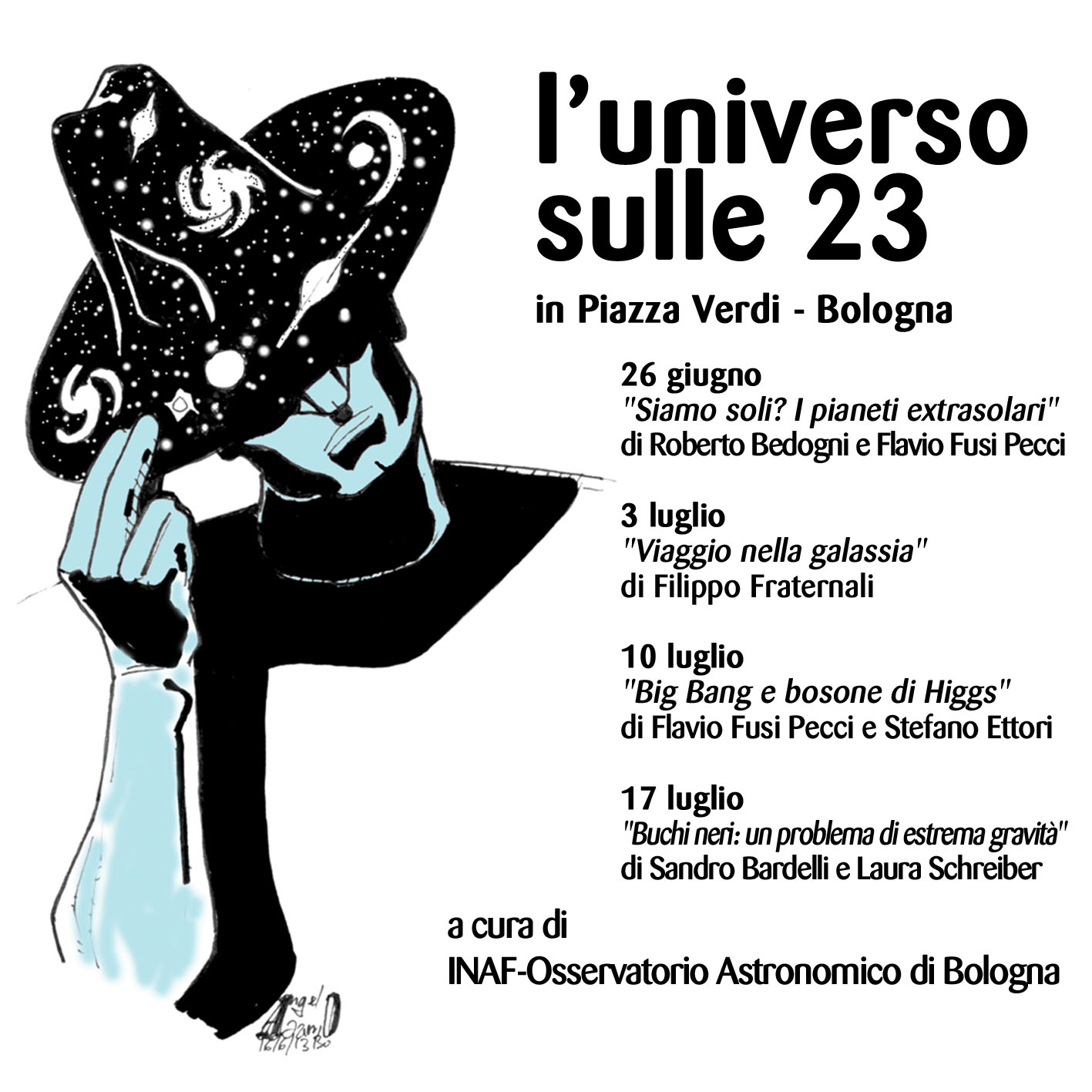 I mercoledì sera alle ore 23 in Piazza Verdi a Bologna si terranno dei brevi incontri astronomici su alcuni temi di grande attualità: